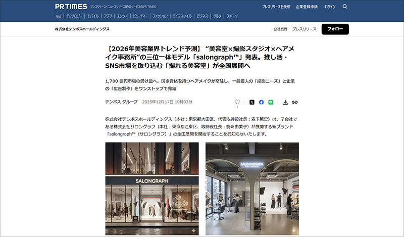 株式会社テンポスホールディングスの子会社「株式会社サロングラフ」は